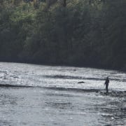 Luke is the one who found him lying on his side, still clutching the Sage RPLXi 8 weight. His arm was under his head as if using it for a pillow while taking a nap. And that’s exactly how it looked, like he was taking a nap in the cool water of the Rogue River. Luke knew his great grandpa was gone. He called the Sheriff’s Office on his cell phone, and the dispatcher directed him to stay with the body and not move it. The sheriff arrived with lights and sirens, along with several of his deputies. They strung yellow DO NOT CROSS tape around the area, and the only one allowed inside the protected zone was the county coroner. Once it was determined that there was no apparent foul play, Luke was let inside the perimeter. As they were lifting his grandpa out of the water, Luke picked up his fly rod, which by then was lying on the sandy bottom. Luke started to reel in the line when he felt a tremendous weight that was suddenly starting to pull back. But at that point, the fight was minimal, and the fish came in peacefully. The sheriff, the deputies, and even the coroner stopped what they were doing and watched in disbelief. Once the fish was in shallow water, Luke handed his rod to one of the deputies and waded in. Luke, an experienced guide and outfitter, stood in place shaking his head from side to side in disbelief. It was the biggest steelhead he had ever seen in the river. Equally surprising, it wasn’t a summer fish, it was a winter steelhead. The winter fish weren’t normally due for another few weeks, but this winter was early. Luke lifted its considerable body out of the water just long enough for everyone to see. He removed the hook and placed the fish back under water. After a slight push, the mighty winter steelhead slowly moved forward, before disappearing into the depths of the Durango Bucket.
